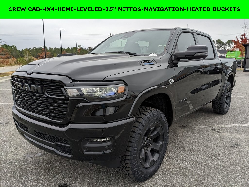 Bluetooth® / Hands-free, Apple Car Play / Android Auto Compatible, Back-Up Camera w/ Guidelines, Cruise Control, Heated Seats, Multi-Zone Climate Control, Navigation, Portable Audio Connection, Power Locks, Power Windows, Premium Audio, Premium Wheels, Security System, Multi-function Steering Wheel, 4×4/4WD, Remote Start, Level 2 Equipment Group, Apple Carplay, Android Auto, Lifted, Oversized Tires, *Premium Delivery Service Available*, iphone / Droid Navigation Compatible, CUSTOMER Pkg 27Z, NIGHT EDITION, LEVELED, 35″ NITTO RIDGE GRAPPLER TIRES, 1500 Big Horn/Lone Star, 4D Crew Cab, 5.7L V8, 4WD, Diamond Black Crystal Pearlcoat, Diesel Gray/Black w/Deluxe Cloth Bucket Seats, 115V Auxiliary Power Outlet, 115V Auxiliary Rear Power Outlet, 12″ Touchscreen Display, 2nd Row In Floor Storage Bins, 3.92 Rear Axle Ratio, 33 Gallon Fuel Tank, 400W Inverter, 4G LTE Wi-Fi Hot Spot, 9 Amplified Speakers w/Subwoofer, ABS brakes, Accent Color Door Handles, Accent Color Premium Power Mirrors, Accent Color Tailgate Handle, Active Cruise Control, Air Conditioning ATC w/Dual Zone Control, Anti-Spin Differential Rear Axle, Apple CarPlay, Auto Power-Folding Mirrors, Auto-Dimming Exterior Driver Mirror, Auto-Dimming Rear-View Mirror, Big Horn Level 2 Equipment Group, Black Exterior Mirrors, Black Exterior Truck Badging, Black Headlamp Bezels, Black Interior Accents, Black Painted Exterior Mirrors Caps, Black Premium Power Mirrors, Black Tail Lamp Bezels, Body Color Fender Flares, Body Color Front Bumper, Body Color Rear Bumper w/Step Pads, Bucket Seats, Cloth Bucket Seats, Cluster 7.0″ TFT Color Display, Compass, Configurable Drive Mode, Connected Travel & Traffic Services, Connectivity – US/Canada, Convex Wide-Angle Exterior Mirror Insert, Deluxe Cloth Bucket Seats, Disassociated Touchscreen Display, Dual Exhaust w/Black Tips, Electronic Stability Control, Exterior Mirrors Courtesy Lamps, Exterior Mirrors w/Heating Element, Exterior Mirrors w/Supplemental Signals, Global Telematics Box Module (TBM), Glove Box Lamp, Google Android Auto, GPS Antenna Input, GPS Navigation, Grille Black Surround Black Mesh, HD Radio, Heated door mirrors, Heated Front Seats, Heated Steering Wheel, Illuminated entry, Integrated Center Stack Radio, Integrated Voice Command w/Bluetooth®, Leather Wrapped Steering Wheel, LED Dome Lamp w/On/Off Switch, LED Footwell Lighting, Low tire pressure warning, Manual Folding Exterior Mirrors, Media Hub w/2 Charge Only USBs, Navigation System, Night Edition, Overhead LED Lamps, ParkView Rear Back-Up Camera, Power Adjustable Pedals, Premium Overhead Console, Quick Order Package 27Z Big Horn, Radio: Uconnect 5 Nav w/12.0″ Display, RAM Grille Badge – Black, Rear anti-roll bar, Rear Power Sliding Window, Rear Window Defroster, Remote keyless entry, Remote Tailgate Release, Security Alarm, SiriusXM Radio Service, SiriusXM w/360L, Stee