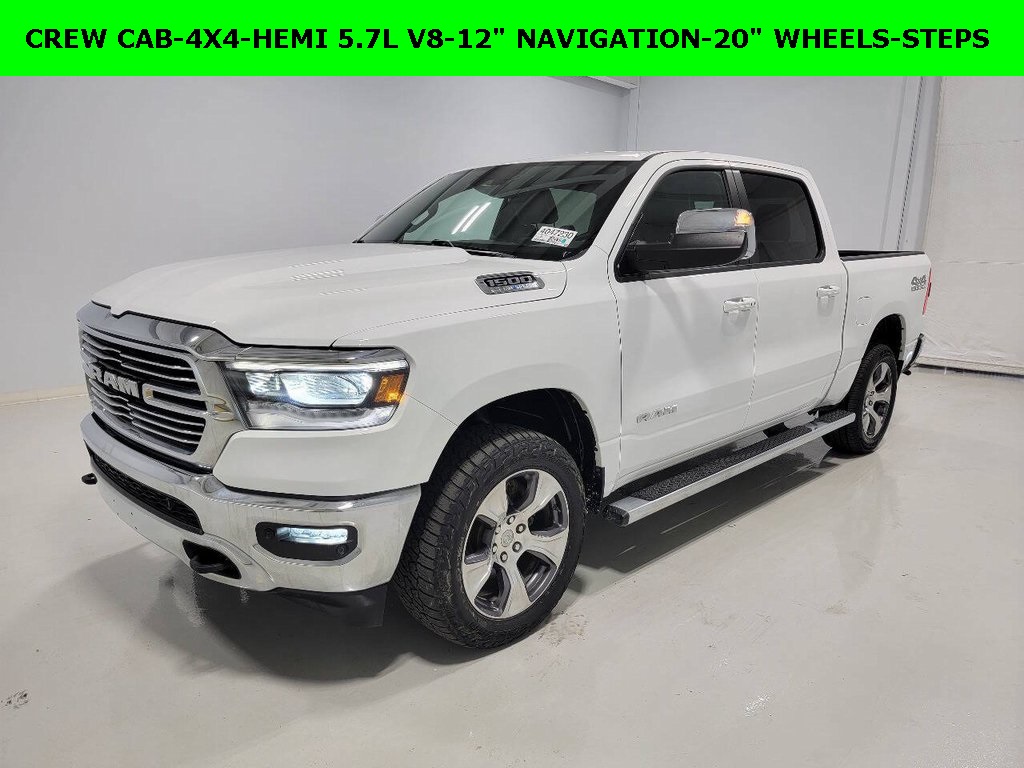 One Owner, Clean Autocheck / No Accidents, Extended Warranty Available, Bluetooth® / Hands-free, Apple Car Play / Android Auto Compatible, Back-Up Camera w/ Guidelines, Heated Seats, Keyless Entry, Leather Seats, Multi-Zone Climate Control, Navigation, Portable Audio Connection, Premium Audio, Premium Wheels, Multi-function Steering Wheel, Trailer Hitch, 4×4/4WD, Remote Start, Spray-in Bedliner, Apple Carplay, Android Auto, Cooled Seats, *Premium Delivery Service Available*, iphone / Droid Navigation Compatible, 1500 Laramie, 4D Crew Cab, HEMI 5.7L V8 Multi Displacement VVT eTorque, 4WD, Bright White Clearcoat, Black Leather, 2nd Row In Floor Storage Bins, 4G LTE Wi-Fi Hot Spot, Apple CarPlay, Auto High Beam Headlamp Control, Bed Utility Group, Blind Spot & Cross Path Detection, Chrome Exterior Mirrors, Connected Travel & Traffic Services, Connectivity – US/Canada, E-Locker Rear Axle, Electric Shift-On-Demand Transfer Case, Exterior Mirrors Courtesy Lamps, Exterior Mirrors w/Heating Element, Exterior Mirrors w/Memory, Exterior Mirrors w/Supplemental Signals, Foam Bottle Insert (Door Trim Panel), For Details, Visit DriveUconnect.com, For More Info, Call 800-643-2112, Front Door Accent Lighting, Front Extra HD Shock Absorbers, Front LED Fog Lamps, Global Telematics Box Module (TBM), Google Android Auto, GPS Navigation, HD Radio, Heated Second Row Seats, Integrated Voice Command w/Bluetooth®, Laramie Level 1 Equipment Group, LED Reflector Headlamps, Mirror Clearance/Running Lights, Mirror-Mounted Aux Reverse Lamps, MOPAR 4 Adjustable Cargo Tie-Down Hooks, MOPAR Spray In Bedliner, Navigation System, Off Road Decals, Off Road Group, ParkSense Front/Rear Park Assist w/Stop, Pick-Up Box Lighting, Power Adjustable Pedals w/Memory, Power-Folding Mirrors, Quick Order Package 27H Laramie, Radio: Uconnect 5 Nav w/12.0″ Display, Rain Sensitive Windshield Wipers, Raised Ride Height, Rear Door Accent Lighting, Rear Extra HD Shock Absorbers, Rear Power Sliding Window, Remote Tailgate Release, Selec-Speed (TM) Control, SiriusXM Radio Service, SiriusXM w/360L, Tow Hooks, Trailer Brake Control, Trailer Light Check, Trailer Reverse Steering Control, Trailer Tire Pressure Monitoring System, Trailer Tow Group, USB Host Flip, Wheels: 20″ x 9″ Premium Paint/Polished.