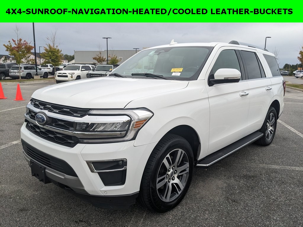 One Owner, Clean Autocheck / No Accidents, Extended Warranty Available, Bluetooth® / Hands-free, Apple Car Play / Android Auto Compatible, 3rd Row Seats, Back-Up Camera w/ Guidelines, Cruise Control, Heated Seats, Leather Seats, Multi-Zone Climate Control, Navigation, Portable Audio Connection, Premium Audio, Premium Wheels, Security System, Multi-function Steering Wheel, Sunroof / Moonroof, 4×4/4WD, Remote Start, Apple Carplay, Android Auto, Cooled Seats, *Premium Delivery Service Available*, 7-Passenger Seating, iphone / Droid Navigation Compatible, Expedition Limited, 4D Sport Utility, EcoBoost® 3.5L V6 GTDi DOHC 24V Twin Turbocharged, 10-Speed Automatic, 4WD, Oxford White, Mahogany w/Heated & Ventilated Leather Front Captain’s Chairs, 3.31 Axle Ratio, AM/FM radio: SiriusXM with 360L, Automatic temperature control, Emergency communication system: SYNC® 4 911 Assist, Equipment Group 301A Mid Package, Exterior Parking Camera Rear, Front dual zone A/C, Heated & Ventilated Leather Front Captain’s Chairs, Heated front seats, Heated rear seats, Heated steering wheel, Low tire pressure warning, Navigation System, Navigation system: Connected Navigation, Panoramic Vista Roof, Power driver seat, Power Liftgate, Power moonroof, Power passenger seat, Radio: B&O Sound System by Bang & Olufsen, Rain sensing wipers, Rear air conditioning, Rear anti-roll bar, Rear window wiper, Remote keyless entry, SiriusXM w/360L, SYNC® 4 w/Enhanced Voice Recognition, Ventilated front seats, Wheels: 20″ Bright Machined Aluminum.