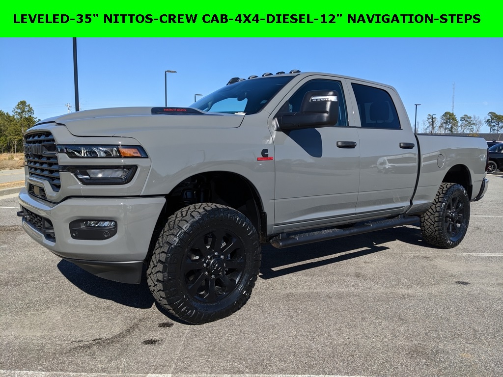 Price includes rebates. Not all customers may qualify for all rebates. $1000 – 2026 National Bonus Cash . Exp. 02/02/2026 Savings applied to everyone. Includes $1000 finance assistance. Not available with special financing, lease and select other offers. Must take New retail delivery by 02/04/2026. Savings applied to everyone. $1000.00 Retail Trade Incentive for current owners trading in 2011 or newer motor vehicle with less than 150,000 miles. Trade must run and drive with valid registration. Not available with special financing, lease and some other offers. Must take New retail delivery by 02/04/2026. Ask Dealer representative for details on qualification. *The Jimmy Britt Premium Delivery Program lets you buy this vehicle right from the comfort of your couch. We frequently deliver vehicles nationwide, and even arrange test drives at home, if you are nearby. We will send you a personal video on any vehicle you are interested in. Call, email, or text us for details.* (Plus, you get our Low-price guarantee and Two free oil changes!) Factory MSRP: $79,135 Black Express Bluetooth® / Hands-free, Apple Car Play / Android Auto Compatible, Back-Up Camera w/ Guidelines, Cruise Control, Navigation, Portable Audio Connection, Power Locks, Power Windows, Premium Wheels, Security System, Multi-function Steering Wheel, 4×4/4WD, Level I Equipment Group, Apple Carplay, Android Auto, Lifted, Oversized Tires, *Premium Delivery Service Available*, iphone / Droid Navigation Compatible, 35″ NITTO RIDGE GRAPPLER TIRES, LEVELED, 2500 Tradesman Black Express, 4D Crew Cab, 6.7L I6, 4WD, Ceramic Gray Clearcoat, Black w/Cloth 40/20/40 Bench Seat or Cloth 40/20/40 Bench Seat, 12″ Touchscreen Display, 2 Way Rear Headrest Seat, 3.42 Axle Ratio, 4 Way Front Headrests, 40/20/40 Split Bench Seat, 400W Inverter, 4G LTE Wi-Fi Hot Spot, 5th Wheel/Gooseneck Towing Prep Group, AM/FM radio: SiriusXM, Apple CarPlay, Apple CarPlay/Android Auto, Auto Power-Folding Mirrors, Auto-Dimming Rear-View Mirror, Black Exterior Mirrors, Body Color Grille-Surround, Cloth 40/20/40 Bench Seat, Connectivity – US/Canada, Dash Pass Thru Wire Circuits, Disassociated Touchscreen Display, Emergency Vehicle Alert System (EVAS), Exterior 115V AC Outlet, Exterior Mirrors Courtesy Lamps, For Details, Visit DriveUconnect.com, For More Info, Call 800-643-2112, Google Android Auto, GPS Antenna Input, GPS Navigation, HD Radio, Low tire pressure warning, Mirror Running Lights, Mopar Black Tubular Side Steps, Navigation System, Off-Road Info Pages, Painted Front Bumper, Painted Rear Bumper, ParkSense Front/Rear Park Assist System, ParkView Rear Back-Up Camera, Power Adjust Mirrors, Power Heated Folding Telescopic Mirrors, Power Telescoping Mirrors, Power-Adjustable Convex Aux Mirrors, Quick Order Package 24C Black Express, Radio: Uconnect 5 Navigation with 12.0″ Display, Rear Folding Seat, Rear Power Sliding Window, Remote USB Port – Charge Only, Selectable Tire Fill Alert, SiriusXM Radio Service, Sport Performance Hood, Storage Tray, Tinted Acoustic Windshield Glass, Tradesman Level 1 Equipment Group, Trailer Tow Pages, Wheels: 20″ x 8.0″ Black Painted Aluminum. Ceramic Gray Clearcoat 2026 RAM 2500 Tradesman 6.7L I6 4WD