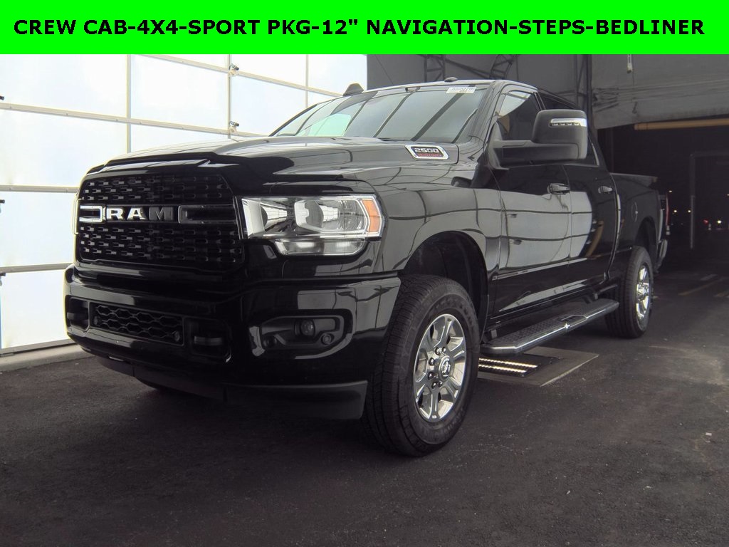 One Owner, Clean Autocheck / No Accidents, Factory Certified Preowned, Remaining Factory Warranty, Extended Warranty Available, Bluetooth® / Hands-free, Apple Car Play / Android Auto Compatible, Back-Up Camera w/ Guidelines, Multi-Zone Climate Control, Navigation, Portable Audio Connection, Premium Audio, Premium Wheels, Multi-function Steering Wheel, Trailer Hitch, 4×4/4WD, Spray-in Bedliner, Apple Carplay, Android Auto, *Premium Delivery Service Available*, iphone / Droid Navigation Compatible, 2500 Big Horn, 4D Crew Cab, 6.4L V8, 4WD, Diamond Black Crystal Pearlcoat, Black w/Cloth 40/20/40 Bench Seat or Cloth 40/20/40 Bench Seat, 12″ Touchscreen Display, 2nd Row In Floor Storage Bins, 4G LTE Wi-Fi Hot Spot, 8.4″ Touchscreen Display, Air Conditioning ATC w/Dual Zone Control, Alexa Built-In, All R1 High Radios, All Radio Equipped Vehicles, Apple CarPlay, Auto Power-Folding Mirrors, Bed Utility Group, Big Horn IP Badge, Black Exterior Mirrors, Black Interior Accents, Bluetooth® Handsfree Phone & Audio, Body Color Door Handles, Body Color Grille Surround, Center Hub, Connected Travel & Traffic Services, Connectivity – US/Canada, Disassociated Touchscreen Display, Dual Glove Boxes, Exterior Mirrors Courtesy Lamps, Exterior Mirrors w/Heating Element, Exterior Mirrors w/Supplemental Signals, Foam Bottle Insert (Door Trim Panel), Footwell Courtesy Lamp, For Details, Visit DriveUconnect.com, For More Info, Call 800-643-2112, Forward & Reverse Utility Lights, Front Fog Lamps, Global Telematics Box Module (TBM), Glove Box Lamp, Google Android Auto, GPS Antenna Input, GPS Navigation, HD Radio, Integrated Voice Command w/Bluetooth®, Leather Wrapped Steering Wheel, LED Bed Lighting, Level 1 Equipment Group, Locking Lower Glove Box, Mirror Running Lights, MOPAR Deployable Bed Step, MOPAR Spray In Bedliner, Navigation System, Off-Road Information Pages, Painted Front Bumper, Painted Rear Bumper, ParkSense Front/Rear Park Assist System, Power Adjust Mirrors, Power Adjustable Convex Aux Mirrors, Power Heated Fold Telescope Mirrors, Power Telescoping Mirrors, Premium Cloth 40/20/40 Bench Seat, Protection Group, Quick Order Package 2GZ Big Horn, Radio: Uconnect 5 Nav w/12.0″ Display, Rear Dome w/On/Off Switch Lamp, Selectable Tire Fill Alert, SiriusXM Radio Service, SiriusXM Satellite Radio, SiriusXM w/360L, Sport Appearance Package, Sport Decal, Steering Wheel Mounted Audio Controls, Tow Hooks, Trailer Tow Pages, Wheels: 18″ x 8.0″ Polished Aluminum.