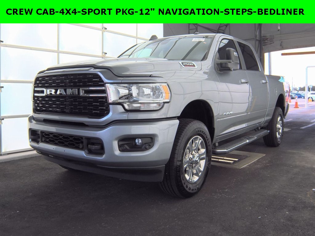 One Owner, Clean Autocheck / No Accidents, Factory Certified Preowned, Remaining Factory Warranty, Extended Warranty Available, Bluetooth® / Hands-free, Apple Car Play / Android Auto Compatible, Back-Up Camera w/ Guidelines, Cruise Control, Multi-Zone Climate Control, Navigation, Portable Audio Connection, Premium Audio, Premium Wheels, Multi-function Steering Wheel, Trailer Hitch, 4×4/4WD, Spray-in Bedliner, Apple Carplay, Android Auto, *Premium Delivery Service Available*, iphone / Droid Navigation Compatible, 2500 Big Horn, 4D Crew Cab, 6.4L V8, 4WD, Billet Silver Metallic Clearcoat, Black w/Cloth 40/20/40 Bench Seat or Cloth 40/20/40 Bench Seat, 12″ Touchscreen Display, 2nd Row In Floor Storage Bins, 4G LTE Wi-Fi Hot Spot, 8.4″ Touchscreen Display, Adaptive Cruise Control w/Stop, Adaptive Steering System, Air Conditioning ATC w/Dual Zone Control, Alexa Built-In, All R1 High Radios, All Radio Equipped Vehicles, Apple CarPlay, Auto High Beam Headlamp Control, Auto Power-Folding Mirrors, Auto-Dimming Rear-View Mirror, Bed Utility Group, Big Horn IP Badge, Black Exterior Mirrors, Black Interior Accents, Bluetooth® Handsfree Phone & Audio, Body Color Door Handles, Body Color Grille Surround, Connected Travel & Traffic Services, Connectivity – US/Canada, Disassociated Touchscreen Display, Dual Glove Boxes, Exterior Mirrors Courtesy Lamps, Exterior Mirrors w/Heating Element, Exterior Mirrors w/Supplemental Signals, Foam Bottle Insert (Door Trim Panel), Footwell Courtesy Lamp, For Details, Visit DriveUconnect.com, For More Info, Call 800-643-2112, Forward & Reverse Utility Lights, Front Fog Lamps, Full Speed Forward Collision Warning Plus, Global Telematics Box Module (TBM), Glove Box Lamp, Google Android Auto, GPS Antenna Input, GPS Navigation, HD Radio, Integrated Center Stack Radio, Integrated Voice Command w/Bluetooth®, Lane Keep Assist, Leather Wrapped Steering Wheel, LED Bed Lighting, Level 1 Equipment Group, Locking Lower Glove Box, Mirror Running Lights, MOPAR Deployable Bed Step, MOPAR Spray In Bedliner, Navigation System, Off-Road Information Pages, Painted Front Bumper, Painted Rear Bumper, ParkSense Front/Rear Park Assist System, Power Adjust Mirrors, Power Adjustable Convex Aux Mirrors, Power Heated Fold Telescope Mirrors, Power Telescoping Mirrors, Premium Cloth 40/20/40 Bench Seat, Protection Group, Quick Order Package 2GZ Big Horn, Radio: Uconnect 5 Nav w/12.0″ Display, Rain Sensitive Windshield Wipers, Rear Dome w/On/Off Switch Lamp, Safety Group, Selectable Tire Fill Alert, SiriusXM Radio Service, SiriusXM Satellite Radio, SiriusXM w/360L, Sport Appearance Package, Sport Decal, Steering Wheel Mounted Audio Controls, Tow Hooks, Trailer Tow Pages, Wheels: 18″ x 8.0″ Polished Aluminum.