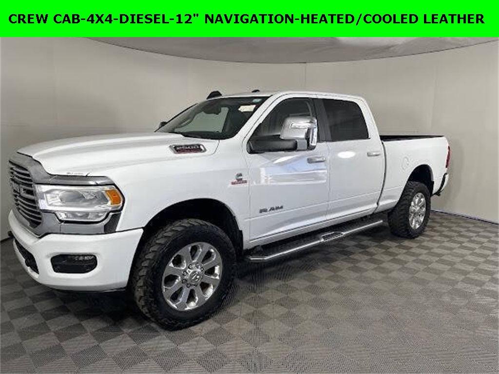 One Owner, Clean Autocheck / No Accidents, Factory Certified Preowned, Remaining Factory Warranty, Extended Warranty Available, Bluetooth® / Hands-free, Apple Car Play / Android Auto Compatible, Back-Up Camera w/ Guidelines, Heated Seats, Keyless Entry, Leather Seats, Multi-Zone Climate Control, Navigation, Portable Audio Connection, Premium Audio, Premium Wheels, Security System, Multi-function Steering Wheel, Trailer Hitch, 4×4/4WD, Remote Start, Apple Carplay, Android Auto, Cooled Seats, *Premium Delivery Service Available*, iphone / Droid Navigation Compatible, 2500 Laramie, 4D Crew Cab, Cummins 6.7L I6 Turbodiesel, 4WD, Bright White Clearcoat, Black w/Leather Trim 40/20/40 Bench Seat or Leather Trimmed Bucket Seats, 12″ Touchscreen Display, 20″ x 8.0″ Polished Aluminum Wheels, 220 Amp Alternator, 2nd Row In Floor Storage Bins, 4G LTE Wi-Fi Hot Spot, Alexa Built-In, Apple CarPlay, Auto Adjust In Reverse Exterior Mirrors, Auto Dim Exterior Mirror, Auto High Beam Headlamp Control, Auto Power-Folding Mirrors, Auto-Dimming Exterior Passenger Mirror, Bed Utility Group, Blind Spot & Cross Path Detection, Chrome Exterior Mirrors, Cold Weather Group, Connected Travel & Traffic Services, Connectivity – US/Canada, Diesel Exhaust Brake, Disassociated Touchscreen Display, Engine Block Heater, Exterior Mirrors Courtesy Lamps, Exterior Mirrors w/Heating Element, Exterior Mirrors w/Memory, Exterior Mirrors w/Supplemental Signals, Foam Bottle Insert (Door Trim Panel), For Details, Visit DriveUconnect.com, For More Info, Call 800-643-2112, Forward & Reverse Utility Lights, Front LED Fog Lamps, Front Performance Tuned Shock Absorbers, Global Telematics Box Module (TBM), Google Android Auto, GPS Antenna Input, GPS Navigation, HD Radio, Heavy Duty Snow Plow Prep Group, Hill Descent Control, Integrated Voice Command w/Bluetooth®, Laramie Level 1 Equipment Group, LED Bed Lighting, LED Reflector Headlamps, Mirror Running Lights, MOPAR Deployable Bed Step, MOPAR Spray In Bedliner, MOPAR Winter Front Grille Cover, Navigation System, Off Road Package, Off-Road Information Pages, ParkSense Front/Rear Park Assist System, Power Adjust Mirrors, Power Adjustable Convex Aux Mirrors, Power Adjustable Pedals w/Memory, Power Heated Fold Telescopic Mirrors w/Memory, Power Telescoping Mirrors, Quick Order Package 2HH Laramie, Radio: Uconnect 5 Nav w/12.0″ Display, Radio/Driver Seat/Mirrors/Pedals Memory, Rain Sensitive Windshield Wipers, Rear Performance Tuned Shock Absorbers, Rear Power Sliding Window, Remote Tailgate Release, Selectable Tire Fill Alert, SiriusXM Radio Service, SiriusXM w/360L, Tow Hooks, Trailer Tow Pages.