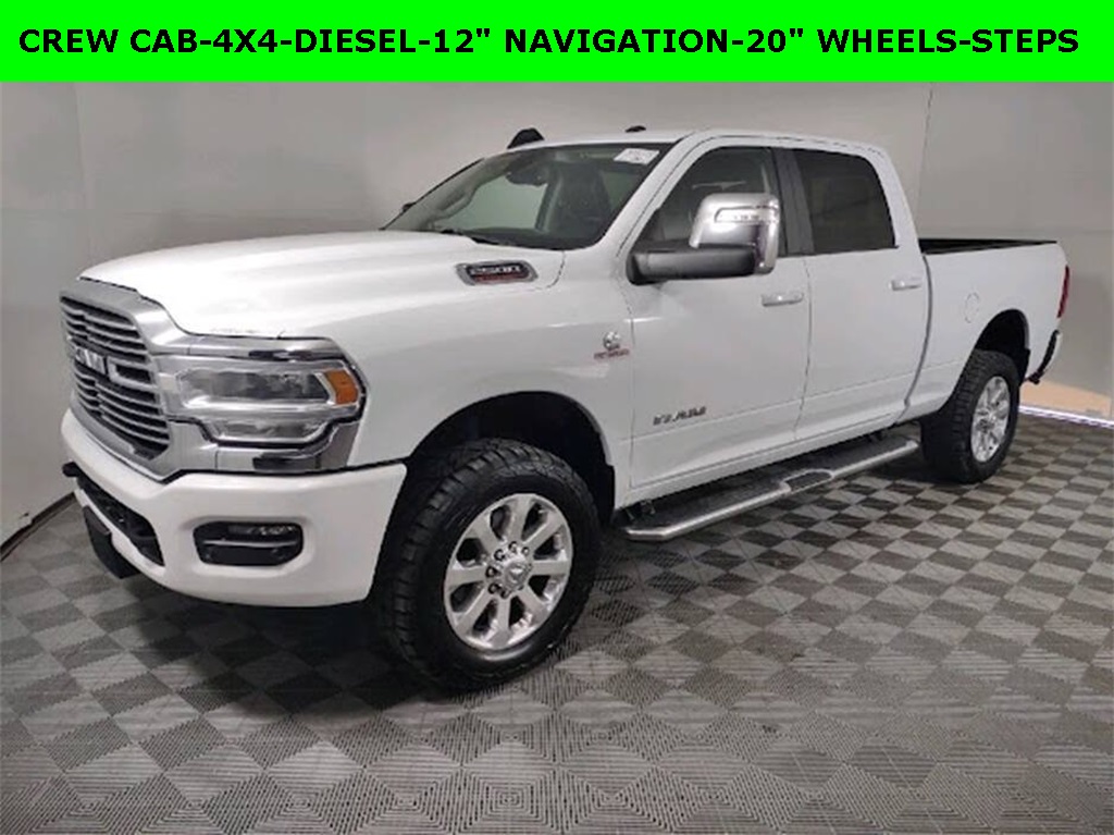 One Owner, Clean Autocheck / No Accidents, Factory Certified Preowned, Remaining Factory Warranty, Extended Warranty Available, Bluetooth® / Hands-free, Apple Car Play / Android Auto Compatible, Back-Up Camera w/ Guidelines, Heated Seats, Leather Seats, Multi-Zone Climate Control, Navigation, Portable Audio Connection, Premium Audio, Premium Wheels, Multi-function Steering Wheel, Trailer Hitch, 4×4/4WD, Remote Start, Spray-in Bedliner, Apple Carplay, Android Auto, Cooled Seats, *Premium Delivery Service Available*, iphone / Droid Navigation Compatible, 2500 Laramie, 4D Crew Cab, Cummins 6.7L I6 Turbodiesel, 4WD, Bright White Clearcoat, Black w/Leather Trim 40/20/40 Bench Seat or Leather Trimmed Bucket Seats, 12″ Touchscreen Display, 20″ x 8.0″ Polished Aluminum Wheels, 220 Amp Alternator, 2nd Row In Floor Storage Bins, 4G LTE Wi-Fi Hot Spot, Alexa Built-In, Apple CarPlay, Auto Adjust In Reverse Exterior Mirrors, Auto Dim Exterior Mirror, Auto High Beam Headlamp Control, Auto Power-Folding Mirrors, Auto-Dimming Exterior Passenger Mirror, Bed Utility Group, Blind Spot & Cross Path Detection, Chrome Exterior Mirrors, Cold Weather Group, Connected Travel & Traffic Services, Connectivity – US/Canada, Diesel Exhaust Brake, Disassociated Touchscreen Display, Engine Block Heater, Exterior Mirrors Courtesy Lamps, Exterior Mirrors w/Heating Element, Exterior Mirrors w/Memory, Exterior Mirrors w/Supplemental Signals, Foam Bottle Insert (Door Trim Panel), For Details, Visit DriveUconnect.com, For More Info, Call 800-643-2112, Forward & Reverse Utility Lights, Front LED Fog Lamps, Front Performance Tuned Shock Absorbers, Global Telematics Box Module (TBM), Google Android Auto, GPS Antenna Input, GPS Navigation, HD Radio, Heavy Duty Snow Plow Prep Group, Hill Descent Control, Integrated Voice Command w/Bluetooth®, Laramie Level 1 Equipment Group, LED Bed Lighting, LED Reflector Headlamps, Mirror Running Lights, MOPAR Deployable Bed Step, MOPAR Spray In Bedliner, MOPAR Winter Front Grille Cover, Navigation System, Off Road Package, Off-Road Information Pages, Power Adjust Mirrors, Power Adjustable Convex Aux Mirrors, Power Adjustable Pedals w/Memory, Power Heated Fold Telescopic Mirrors w/Memory, Power Telescoping Mirrors, Quick Order Package 2HH Laramie, Radio: Uconnect 5 Nav w/12.0″ Display, Radio/Driver Seat/Mirrors/Pedals Memory, Rain Sensitive Windshield Wipers, Rear Performance Tuned Shock Absorbers, Rear Power Sliding Window, Remote Tailgate Release, Selectable Tire Fill Alert, SiriusXM Radio Service, SiriusXM w/360L, Tow Hooks, Trailer Tow Pages.