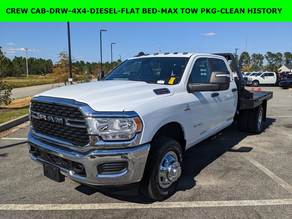 One Owner, Clean Autocheck / No Accidents, Extended Warranty Available, Bluetooth® / Hands-free, Back-Up Camera w/ Guidelines, Cruise Control, Portable Audio Connection, Premium Wheels, Multi-function Steering Wheel, Trailer Hitch, 4×4/4WD, *Premium Delivery Service Available*, FLAT Bed, 3500 SLT, 4D Crew Cab, Cummins 6.7L I6 Turbodiesel, Aisin 6-Speed Automatic, 4WD, Bright White Clearcoat, Diesel Gray/Black w/Cloth 40/20/40 Bench Seat or Premium Cloth 40/20/40 Bench Seat or HD Vinyl 40/20/40 Split Bench Seat or Premium Cloth Bucket Seats, 11.50″ Dual Wheels Rear Axle, 12.0″ Dual Wheel Rear Axle, 2 Way Rear Headrest Seat, 4 Way Front Headrests, 4.10 Axle Ratio, 40/20/40 Split Bench Seat, 6000# Front Axle w/Hub Ext, Acoustic Front Door Glass, Add 4.10 Axle Ratio, Black-Out Tape, Body Insulation, Bright Front Bumper, Chrome Grille Surround, Chrome Headlamp Bezels, Chrome Nostrils/Molded in Color Black Grille, Cloth 40/20/40 Bench Seat, Cloth 40/20/40 Bench Seat w/2_G, Door Sill Scuff Pads, Dual Rear Wheels, Emergency communication system: SiriusXM Guardian, Floor Covering Carpet, For Details, Visit DriveUconnect.com, For More Info, Call 800-643-2112, Front Armrest w/Cupholders, Glove Box, Halogen Quad Headlamps, Integrated Voice Command w/Bluetooth®, Map/Courtesy Lamp, Max Tow Package, Overhead Console, Overhead Cupholder Lamp, Painted I/P Bezels w/Hydrographics, Passenger Sun Visor w/Illuminated Mirror, Premium Vinyl Door Trim w/Map Pocket, Quick Order Package 2YG SLT, Radio: Uconnect 3 w/5″ Display, RAM Door Badges, Rear anti-roll bar, Rear Dome Lamp, Rear Folding Seat, Remote Keyless Entry, Satin Chrome Key Fob, SLT Badge, Tinted Acoustic Windshield Glass, Tow Hooks, Traveler/Mini Trip Computer, Wheels: 17″ x 6.0″ Steel Chrome Clad.