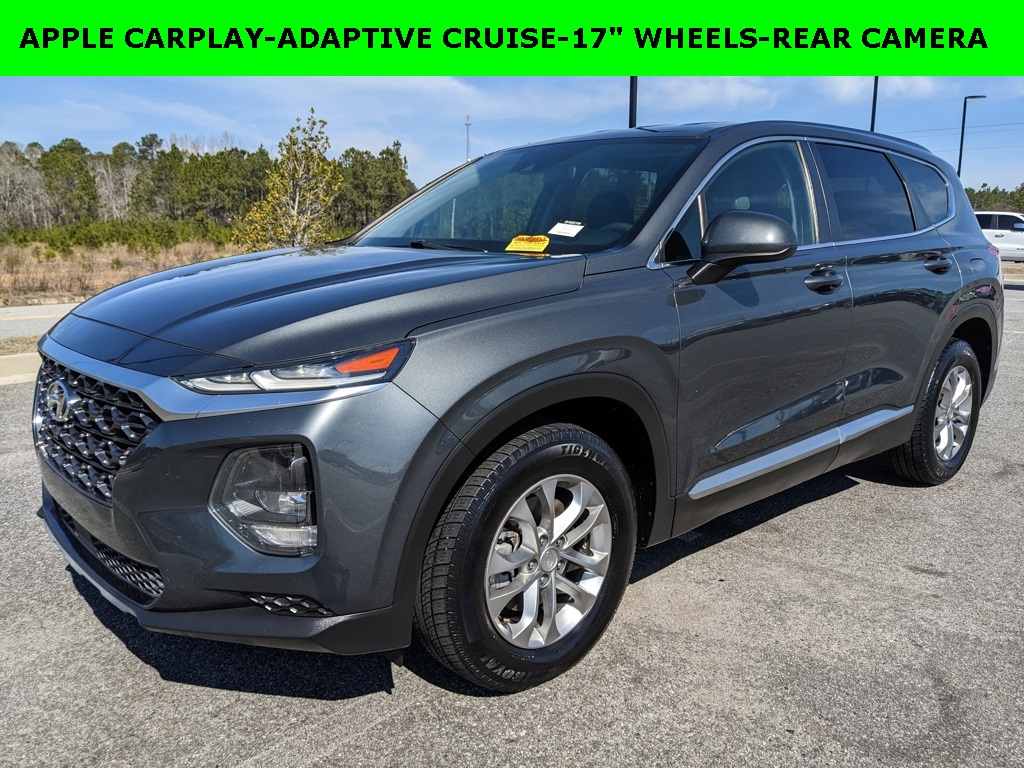 Extended Warranty Available, Bluetooth® / Hands-free, Apple Car Play / Android Auto Compatible, Back-Up Camera w/ Guidelines, Cruise Control, Portable Audio Connection, Power Locks, Power Windows, Multi-function Steering Wheel, Apple Carplay, Android Auto, iphone / Droid Navigation Compatible, Santa Fe SE, 4D Sport Utility, Rainforest, Black/Black w/Stain-Resistant Cloth Seating Surfaces, 17″ x 7.0J Alloy Wheels, Apple CarPlay & Android Auto, Axle Ratio 3.798, Exterior Parking Camera Rear, Front Bucket Seats, Low tire pressure warning, Option Group 01, Radio: AM/FM/MP3 Display Audio, Rear anti-roll bar, Rear window wiper, Remote keyless entry, Stain-Resistant Cloth Seating Surfaces.